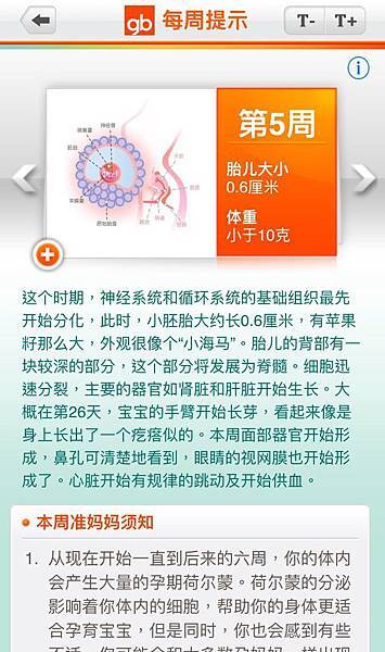 - 每週有介紹該注意什麼、吃什麼、寶寶發育狀況。