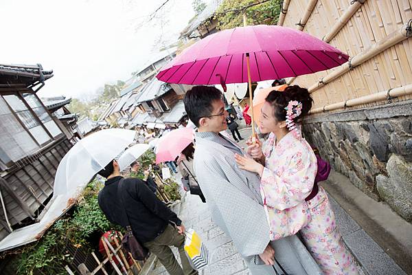 玩得正盡興,沒想到開始下起雨來 還好貼心的攝影師已事先準備好美麗的日本手工傘了!️意境也超美的