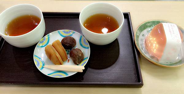 日本人的待客之道真的是精緻又精緻,我們買了一個櫻花果凍,想說嚐嚐看,沒想到店員問我們是否要內用,我們說好呀!他們便幫我們準備了茶點及酸梅一起搭配 實在是太舒服了!大推!