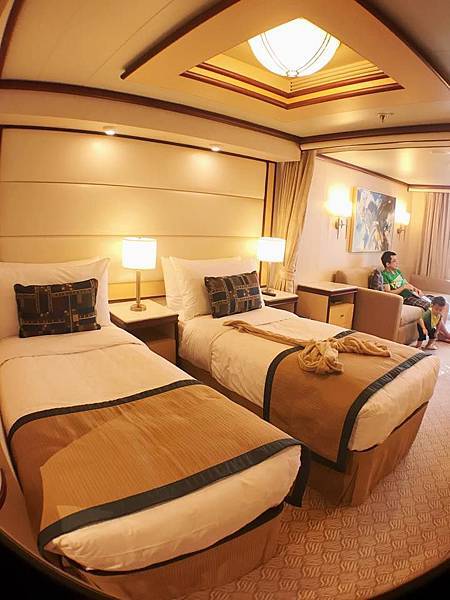 回房洗完澡之後...寶寶竟然還精神很好,約10pm我們還帶寶寶上去船頂,看看星空電影院,倦了才真的回房睡覺。