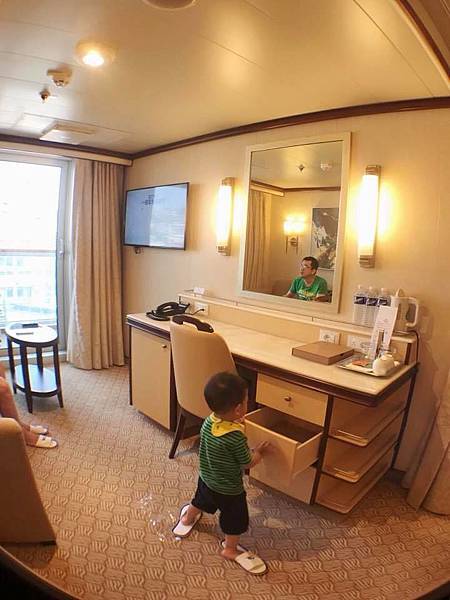 從去年我們就想訂一趟郵輪之旅帶寶寶去玩,因為寶寶還沒出國過、我們也是新手父母不確定寶寶能否撐得住飛機上的旅行... (我家的猴寶本月1y10m,去年11月左右訂的郵輪,那時他才1y3m左右,超級好動又坐不住... 不太會講話、不如意會用大哭崩潰來表達@_@... 光想到在飛機上大哭我們就皮皮挫,因此決定走郵輪路線。我們住在基隆,搭計程車去基隆港只要15mins,對寶寶來說是小case。只要上船了就隨時隨地都可以玩,崩潰時還可以帶回房間好好安慰。所以為了有好的品質,我們還刻意選擇了迷你套房陽台艙,果然一路順暢寶寶真的表現良好,老公和我和寶寶都超享受!玩得意猶未盡!