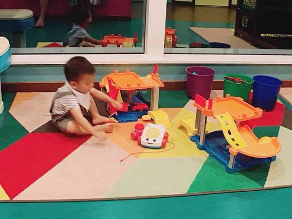 玩到不走了XDDDD 最後是因為他大便了,我們必須帶他回房洗澡換尿布,強行拉走的呀...![]()