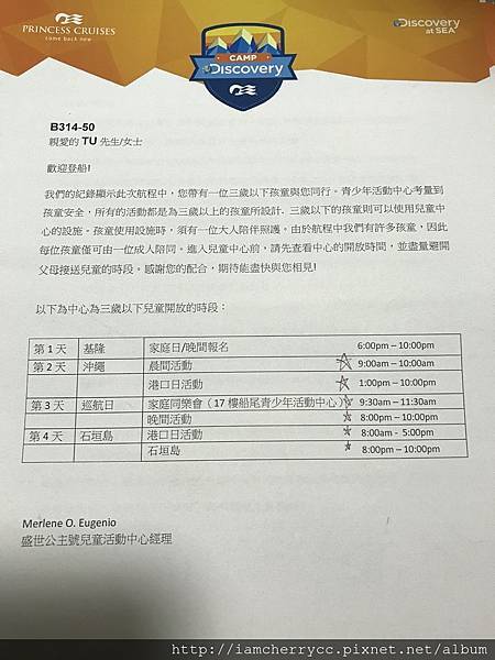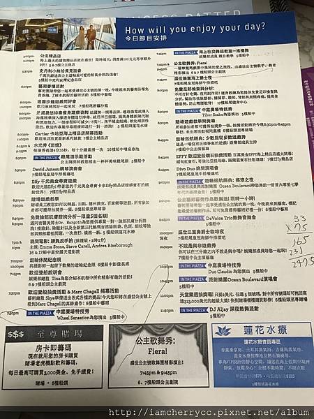 再來有一個原因就是闔家適宜... 因為可以完全不用動腦去思考再來要玩什麼,只要把船上的節目表取出圈出想去的,走出房間,就成就達成XDDDD