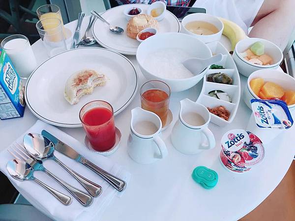 房間早餐也都是免費的呦!可以選擇在房間吃,或者是出去外面的餐廳吃各式早餐buffet。
