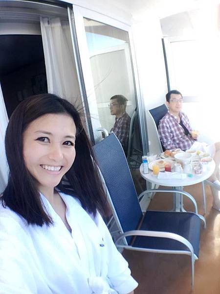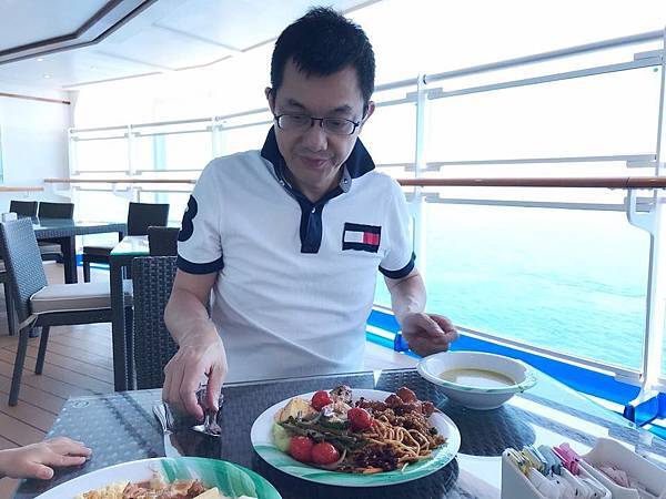 因為還沒靠岸,我們就又悠閒地去吃海景brunch,打算吃飽一點,下船去沖繩7小時玩耍不用吃東西,回船上再吃!