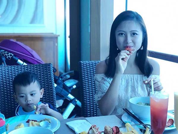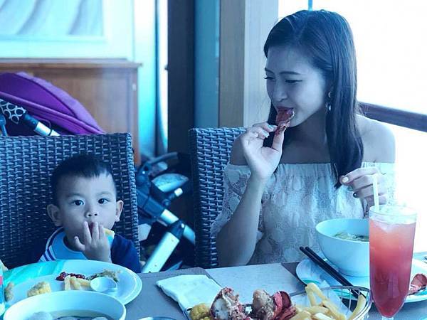 我和寶寶睡到自然醒後去吃龍蝦、拉麵