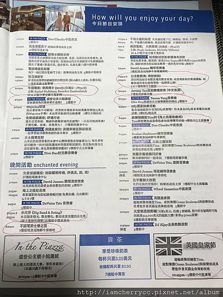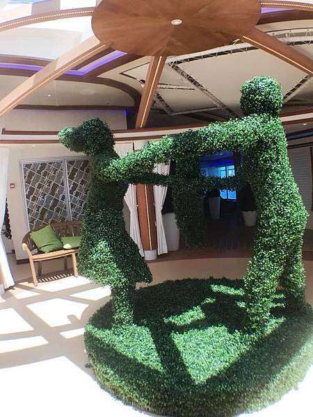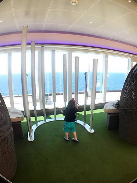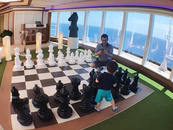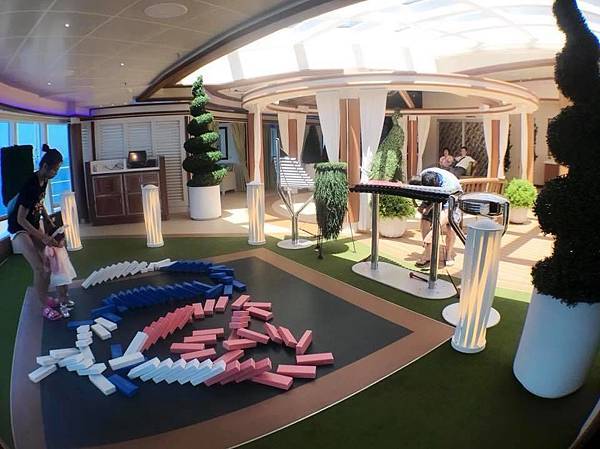 吃飽後在郵輪空中花園散步、遊戲、曬太陽,享受美好的陽光與音樂。