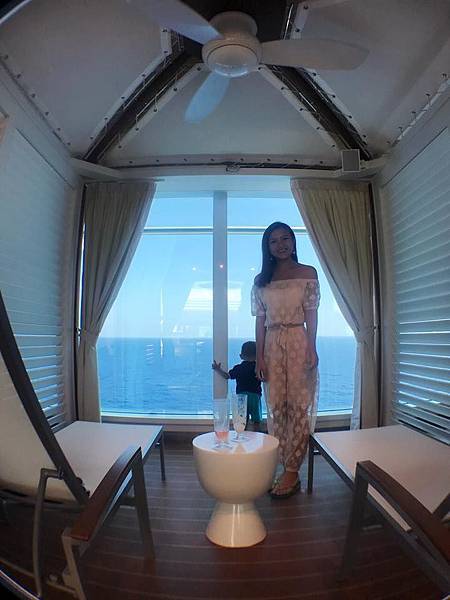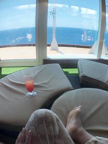 在遊艇頂樓的泳池曬太陽游泳與spa實在太享受了...