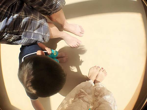 發現地上的陽光很溫暖,寶寶要我們一起跟他踩踩看😆